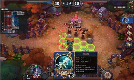 分析:敌方耐久为10,必须击杀3次敌方外加1次对基地的物理攻击。考虑到风行者的穿云箭技能时直线AOE技能(对直线上3个敌人伤害依次为3,1,1),下面提供一种完美通关的参考方法:
