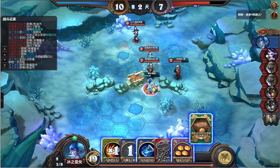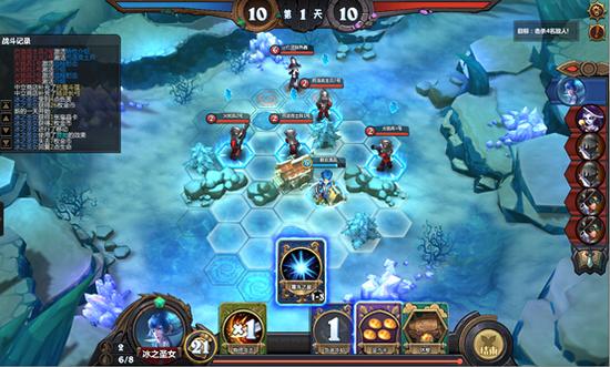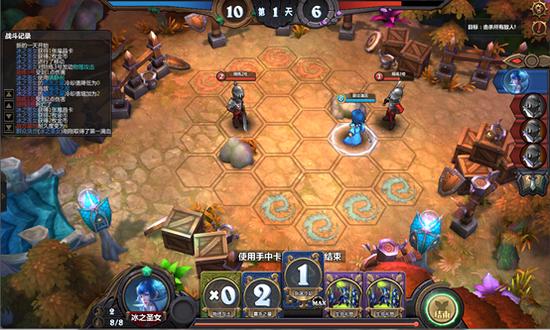 分析:对面耐久度为9,要击杀3名敌方。敌方的血量都为2,考虑到冰女的技能为AOE(伤害2),可以用物理攻击加技能来达成目标。