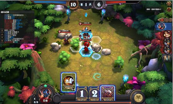 分析:三个本方英雄都是AOE技能,且忍者有沉默技能。利用好魔晶卡和英雄间的配合。