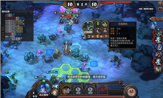 分析:敌方的亡灵法师是近战法师(其技能释放距离都是1-1),控制好与敌方亡灵法师距离。