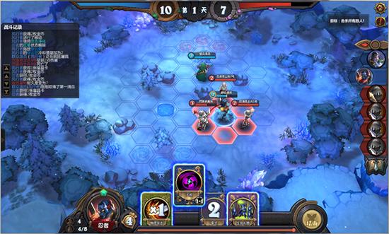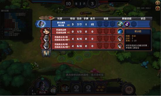 分析:敌方耐久度为3,需要击杀对面一名敌人,显然不能去打50血的大血牛……考虑到对面法师装备了抗磨斗篷会抵消风行者的技能伤害,所以先用魔晶爆弹效果之一来破坏对面的魔抗斗篷,