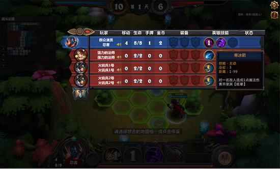 分析:敌方耐久为10,则必须击杀对面4名敌人。风行者一人无法一次击杀所有敌方,而忍者处于眩晕状态,所以风行者需要先用状态净化解除忍者的眩晕状态。