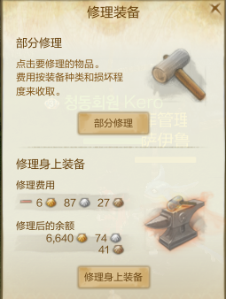 上古世纪的背包系统和目前大多数网络游戏差不多,还是非常简洁明了的。总体来说具备物品分类、修理装备、锁定物品、品质提升、物品外观更改、背包整理、存放金币和蓝颜贝等功能。