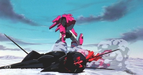 《超时空要塞PLUS》为了掩护挚友和被挚友抢走的女人,与强敌同归于尽的加鲁特和VF-21。