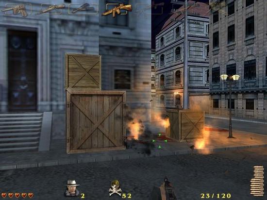 游戏中共提供了七种武器供玩家选用,从普通的毛瑟半自动手枪、狙击步枪到每分钟300发的马克沁二四式重机枪——这可是个大家伙,你抚摸着它的时候,甚至能感觉到子弹撕裂敌军身体带来的快意。每种武器的性能与参数都是严格依照实物设定的,使用的技巧与造成的效果也完全不同。游戏中人物的动作之多将远远出乎你的预料,同一位日军,在不同状态下,被不同的武器,击中不同的部位,会有截然不同的反应:有的向后倒栽,有的跪地嗥叫,有的被炸成放射状飞出……仅此一项便多达数十种动作,而且全部由真人采集而成!