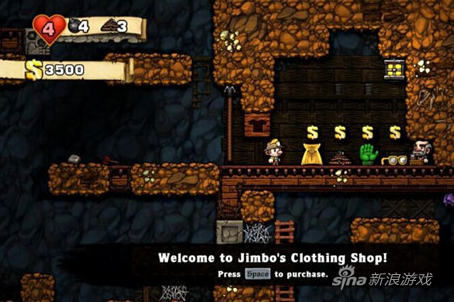 如果你在《洞穴探险》的开放世界里失去了所有的炸弹和绳索,你可以使用一些特殊的方法来改变破产的局面——比如,抢劫商店——当然要建立在你跑得足够快的情况下,要知道,商店老板的枪子儿可是不长眼的,得手以后你最好赶快跳到深处的洞穴里。嘿,这可不代表你完全安全了。你要在接下来的游戏阶段小心老板残酷的复仇,死亡的威胁将在每个关卡突然出现——还有更糟糕的:商店的墙上将会出现画着你的脸的通缉令……