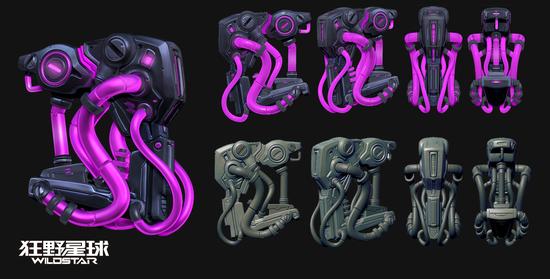 这是游戏中的职业之一工程,不论是身上极具机械感的装甲,还是身边的机械宝宝,都有着各自的颜文字式机械表情,科幻的同时不失搞怪,这就是《狂野星球》的整体风格。