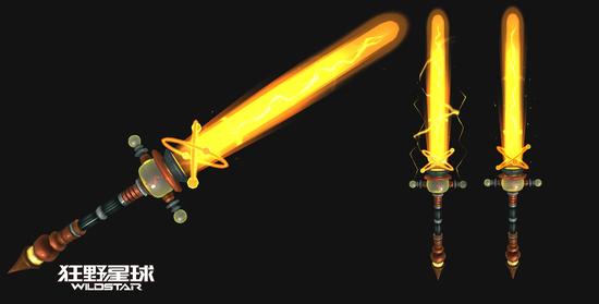 这是游戏中另外一把战士用的大剑,机械动力与电路刀刃等多种元素混合在一起。虽然不如激光剑般炫酷,但是给人更有力量感。