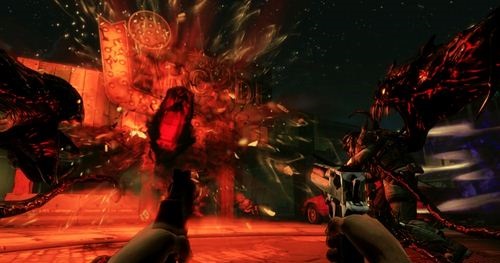 是的,在你得到火焰喷射器的那一刻,不止敌人是需要燃烧的了,而是一切可燃(以及不可燃)的场景,道具!