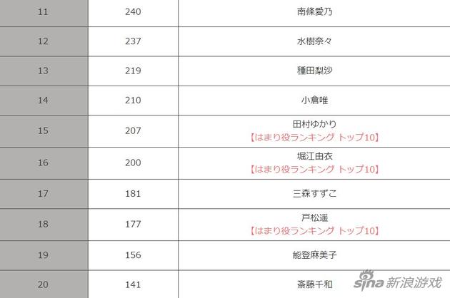 2016年女声优人气排行榜前十名: