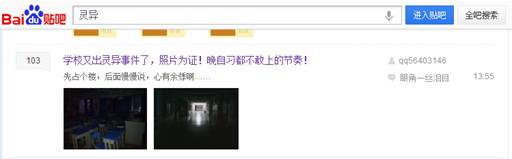 幽灵鬼魂的灵异传说自古以来都是一个经久不衰的话题,各种灵异照片也层出不穷,往往给人一种不寒而栗的感觉。而这类事件的多发地点总是少不了校园,看看各类校园题材的恐怖电影就知道了。而近日在百度的灵异吧以及某地中学论坛上流出了一组校园“绿幽灵”的照片让网友们争议不断,甚至一度引发关于幽灵是否存在的论战。