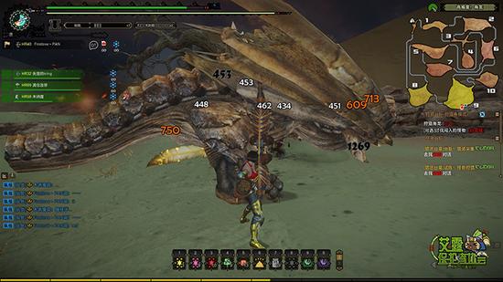首先角龙开局一般会在5、8、2区中其一,在8区打一段时间一般会去9区,偶尔会去7区,睡觉则会去6区,挨着墙睡。地图变更:9区增加了很多岩石柱子,这个柱子的主要作用就是让角龙卡住角(只能卡一次,第二次撞上去则会被撞碎)。8区的两面墙也可以卡住角龙的角,只能卡一次。角龙肉质最好的地方是尾巴尖,类似于锤子形状的尾巴尖,眠后一发秘箭可以打出极限的5000+++(有猫饭加持,武器强化最高,觉醒状态),角龙可破的地方有三个,头上的两个角,以及可以断尾,角的肉质较差,一般为白字,破掉角之后角龙会有几秒的停滞,断尾则会向前扑倒,另外,角龙是可以倒地的,打腿为红色字体,肉质较好。