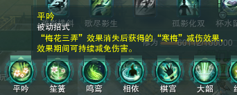 这个是这样的。以前点了平吟之后,平吟指的是“效果期间可持续减免伤害”的意思是把梅花破掉以后的一次伤害降低改为持续效果的意思25减伤其实应该叫做【寒梅】减伤,