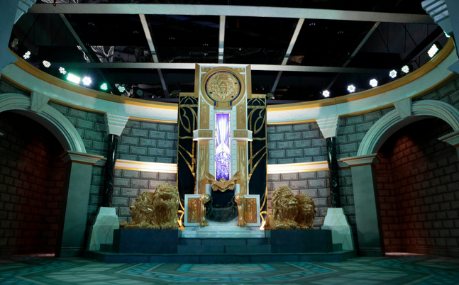 电影《魔兽》主题展《魔兽》主题展分为部落和联盟两个区域,最吸引眼球的是足有两层楼高的暴风城王座和兽人帐篷,现场的《魔兽》电影概念墙展示了多幅电影概念图、设计手稿以及详尽的文字介绍。传奇影业还专门从美国、加拿大等地空运140余件在影片拍摄时真实用过的道具、武器和服装原件。
