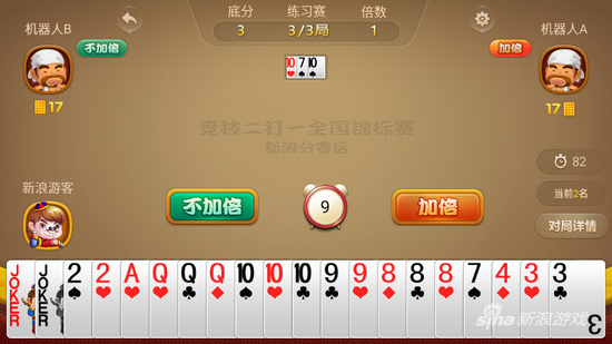 新浪游戏作为首批国家体育总局棋牌运动管理中心授牌的竞技趣味棋牌赛事战略合作伙伴之一,在10月8日正式上线移动端棋牌竞技类网游《竞技二打一软件》,这也意味着“全国竞技二打一扑克锦标赛”新浪分赛区正式开启,全国人民均可下载参与比赛。