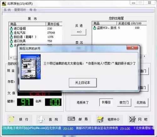 2001年,市面上出现了一款名为《北京浮生记》的免费小游戏,游戏描述了一个背景离乡的北漂,要在北京的40天内赚够足够的金钱偿还债务,同时还要小心在北京遇到的各种事件并设法生存下来的故事。
