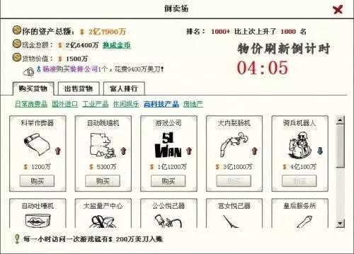 《大明浮生记》保留了《北京浮生记》中的特色倒卖系统,倒卖系统每十分钟刷新一次商品价格,玩家通过买卖商品来挣钱。