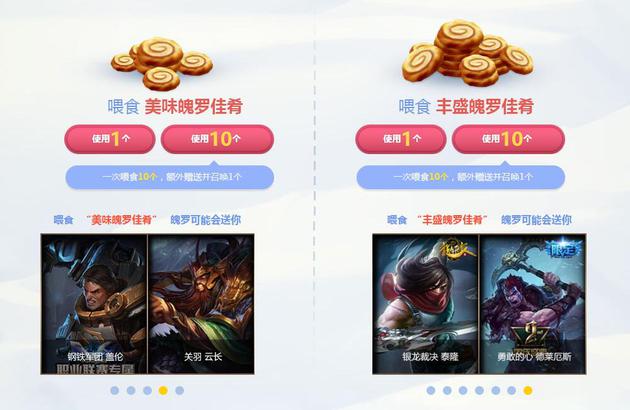 5 本次活动提供”喂食10个”功能,每次使用”喂食10个”功能会额外获赠并喂食1个对应级别的魄罗佳肴。