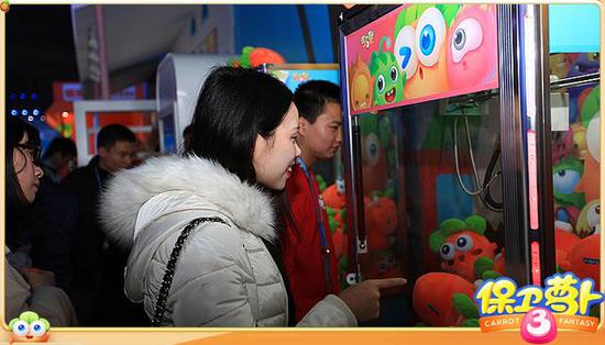 作为一款休闲塔防手游,《保卫萝卜3》在TGC2016上的主题就是玩!在本届TGC现场,《保卫萝卜3》在“秋叶原区”打造出了一个极具二次元特色的趣味互动体验展区。在这里,玩家可以与萝卜人偶互动挑战赢取丰厚奖励。在“乐耍巷子”中,玩家可以品尝到多种多样的以“萝卜”为造型的特色美食,让你从指尖到舌尖感受不一样的“萝卜”。此外,展区场地内还设有多台娃娃机,参与就有机会将N多萝卜公仔抓回家。如果遗憾没有抓到娃娃的话,TGC 周边商城中还有多款造型各异的毛绒萝卜公仔出售。喜欢的话,就把呆萌阿波带回家吧!