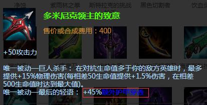 盖伦的大招是生命值越低伤害越高,所以千万注意别急着放大招。如果过度高估了自己的大招会导致伤害不够,从而失去最主要的一个技能。而且因为大反派效果的原因,盖伦可以轻松斩杀对方最强势的英雄。