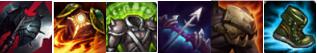 赵信十分依赖攻速,所以在出装上选择血刃来提高自己的伤害,血刃每次普攻能够附带目标百分之四的最大生命值伤害,而且还拥有高达50%的攻速加成。配合上赵信W的被动,赵信攻速属性已经非常不错了。带上红色的打野装能够使赵信的作战能力有着大幅度加强。赵信一般属于半肉半输出型的一个打野英雄,所以第二件推荐做出三项来提高他的输出能力。三项不仅拥有高额攻速加成,被动的耀光效果也能为赵信提高他的额外伤害。小木槌的追击能力是赵信提高GANK能力的一个关键所在,有了三项血刃以后的赵信已经能够在单人作战中处于不败地位。然后再做出亡者板甲来提高自己的前排能力。