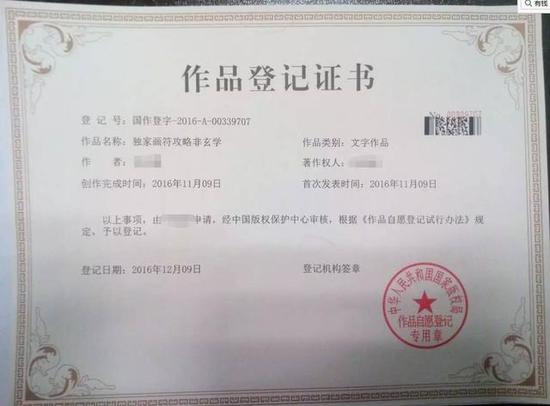 B导给我看了他最近为“独家画符攻略非玄学”申请的著作权,登记日期为12月9日,也就是上周五。