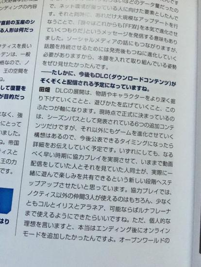 《最终幻想15》日后将会尽早地加入“协助玩家”,过场动画中的角色将可操纵,和玩家一起体验游戏。除了诺克提斯王子和的三个小伙伴之外,科尔、伊利斯、女龙骑也会成为可操纵角色,有希望的话,还有露娜。不过这些目前还只是田畑端个人的理想状态,要在ONLINE模式追加后,才能实现。