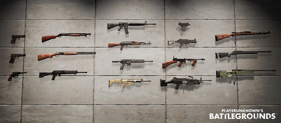 目前游戏中一共有17 种不同的武器:两种手枪、一种左轮手枪、一种经典泵动式猎枪、一种双管猎枪、一种半自动猎枪、四种突击步枪、三种冲锋枪、一种轻机枪和三种狙击步枪。玩家将能在玩游戏时从环境中获取其中的多数武器,而强大的武器只能从每回合游戏的补给包掉落中获取。