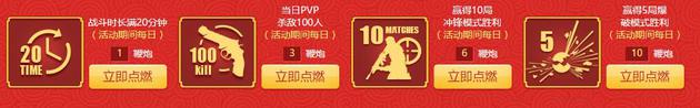 1、用户在页面通过完成指定任务或行为,获得鞭炮。用户选择点燃鞭炮后,根据累计的鞭炮数可获得对应的新春幸运大礼包。