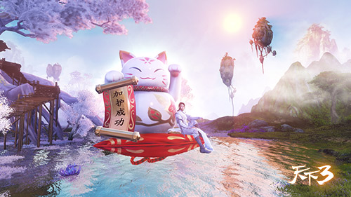 最后是自带幸运Buff的新春坐骑“招财进宝”,正所谓“鸡年招财又进宝,加护炼化红不少!”这只招财大萌猫左手握着的金漆卷轴有“加护成功”与“炼化好运”两种状态可选,招财猫会因应状态不同,在我们加护或者炼化装备时带来好运,简直是新年最受欢迎的大荒神兽!是不是很贴心呢?