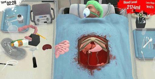 看着旁边摆放的多是多样的道具,根本把控不住自己,拿起电锯锯肋骨,然后就自动移动内脏,讨厌碍事的血管直接就拿刀切了,隐隐约约,已经忘了手术的目的了,完全沉浸在肆意玩弄内脏的快感中,而我们可爱的病人禁不住折腾直接嗝屁了。或许对于病人来说,这真是最难过的死法了,是杀手还是天使,只在一念医生的思量。
