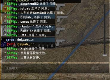 之后在第九局开始前的暂停时间里,ceros并没有退出游戏或者是服务器,在暂停时间的第5秒和20秒时还在切刀切枪。在暂停时间过去30秒之后,T方玩家Deplan发起取消暂停的投票,CT方4名队员选择反对1名选择同意,而此时ceros依然没有退出游戏或者是服务器反而在卸下、安装手枪的消音器。