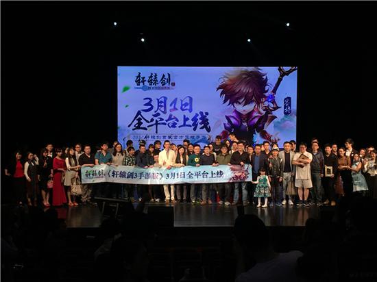 音乐会开始之前,率先由轩辕剑系列的制作人蔡明宏先生(以下称之为蔡魔头)带领domo小组成员登场亮相,现场爆发出了一阵欢呼之声。然后,中手游CEO肖健先生(以下称之为肖总)上台宣布《轩辕剑3手游版》将于3月1日全平台同步上线。