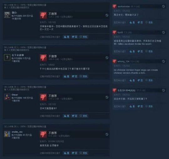 中国玩家常会以没有中文版为由在Steam商店里为游戏打差评,其中《足球经理2017》的汉化风波引发了不小的关注