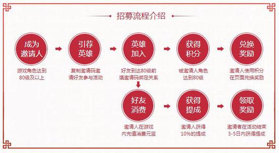 《贪玩蓝月》周年庆第一波,重金招募天下英雄!所有《贪玩蓝月》80级以上的玩家可以邀请你的好友进入游戏注册,两名角色结为“情义关系”,收益即刻共享。邀请玩家在新玩家消费后,可以获得10%游戏分红。除此之外,拥有情义关系玩家的两名玩家,可以通过提升等级、消费元宝等手段攒取“情义值”,情义值可以用来兑换各种游戏道具,以及珍贵的“招兵买马”特殊称号。