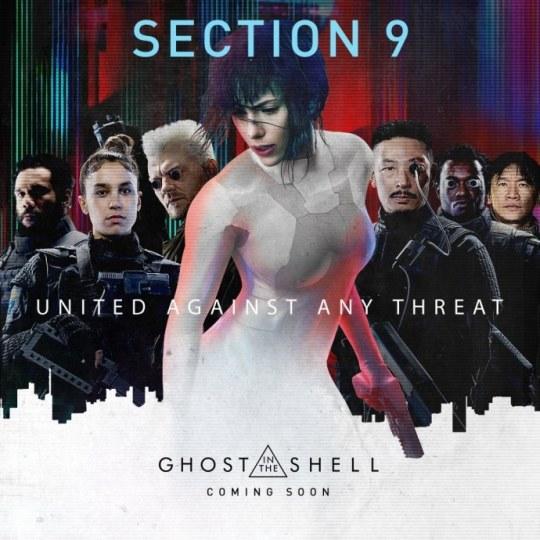 海报中,斯嘉丽·约翰逊饰演的少佐站在中间,而其他成员巴特(Pilou Asbæk饰)、荒卷大辅(北野武饰)、石川(Lasarus Ratuere饰)、波玛(Tawanda Manyimo饰)、斋藤(泉原丰饰)、Ladriya(Danusia Samal饰)及陀古萨(黄经汉饰)等公安九课成员位于少佐身后。