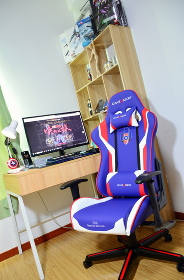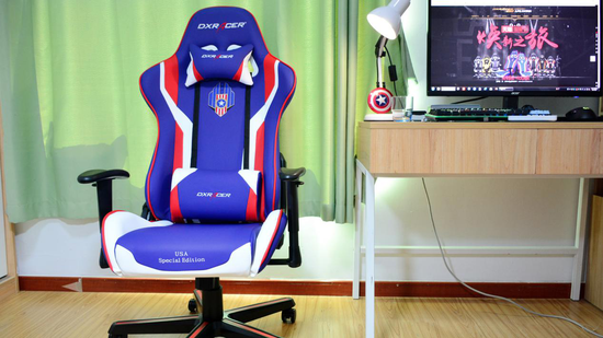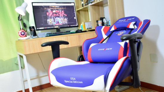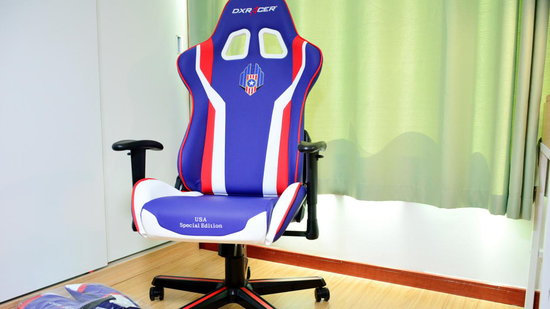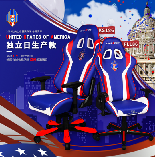 这就是所谓的“电竞椅”,由职业电竞比赛中衍生出来的电竞装备之一,为的就是给职业电竞选手提供最舒适的坐姿,让电竞选手在长时间高强度的比赛中腰背部得到充分的支撑、臀部得到舒适的坐感、手肘得到合适的倚靠,以让电竞选手发挥最好的水平。当然,如果将这些设计放在日常使用时那真的太棒了。今天我也购入了来自LOL职业联赛LPL的官方赞助商——DXRacer迪锐克斯2017 LPL比赛同款的独立日USA款蓝红白配色的FL186电竞椅。