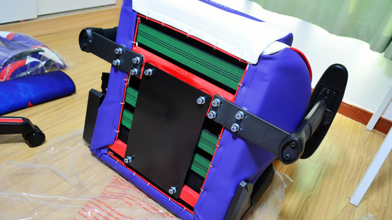 从上到下是椅背、椅座、支架配件,每层都有泡沫纸保护。上图是不是已经可以看到“骚骚”的配色了?