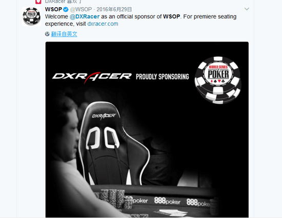 作为本场赛事的指定座椅,迪锐克斯也有幸与李开复一起见证这一场在人工智能领域具有里程碑意义的人机大战。DXRacer与德扑一直有着不解之缘,在2016年,DXRacer在世界扑克比赛中最权威、最受尊重的世界扑克锦标赛(World Series of Poker)中惊艳亮相。2017年,迪锐克斯也再度牵手WSOP,为赛事打造专属座椅。