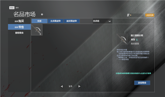想要获得武器皮肤,只要君主等级在25级以上和战斗评价中获得双王以上就可以获得名品箱。开启名品箱就有几率获得主和副武器皮肤。皮肤获得后可以在名品库里找到,同时玩家还可以通过名品市场中的寄售和购买来获取主、副武器皮肤。