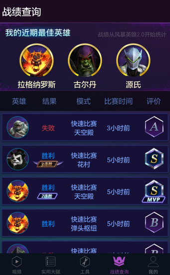《风暴英雄》的官方APP“随身风暴英雄”新版上线,新增个人战绩查询系统。从战斗成绩,到最擅长使用的英雄,甚至包括你在某场比赛当中的表现与英雄评级,都能一一查询看到。