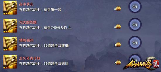 学霸还是学渣……在《仙侠世界2》只有一个成就之遥!想要答对包含了脑筋急转弯、天文地理、自然常识、甚至还有游戏策划口味,样貌是否好看这种问题,无疑是很难的!但是想要全部都打错,那也是相当有本事呀!