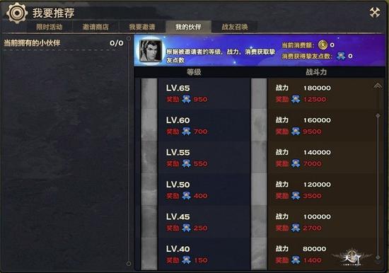 邀请好友进入天谕大世界,完成相应任务(升级、战斗力提升等)即可获得挚友邀请点数奖励,如下图,可以在“我的伙伴”界面查看: