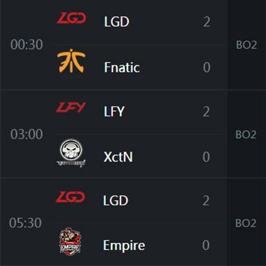 在前三轮的小组赛中,LGD战队以2-0的比分连续击败了Fnatic与Empire战队。而身在B组的LFY也是轻松的以2-0的比分击败了XctN,LGD双雄目前在小组赛中都取得了全胜。