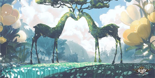 原画内精美的场景一定能吸引到收藏爱好者的的目光。上图为游戏中的玲珑谷是游戏中的云垂大陆举例灵界最近的地方,聚居着许多灵兽,也是游戏中担任奶妈角色的灵珑弟子修行与居住所在。谷中四季如春,奇花异草蓬勃盛开,珍禽灵兽无拘无束,当玩家们闲暇之时,可以尽情的徜徉在这样一片绿色之中。