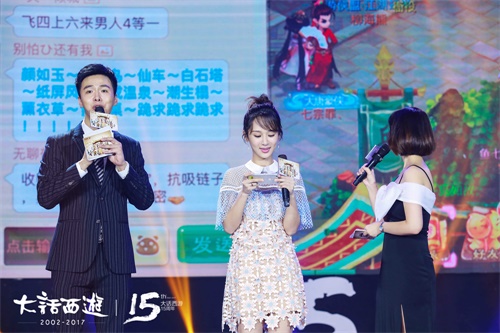 同时大话事业部总裁少暤先生公布了大话家族端手游重磅产品更新内容以及系列品牌动向,为数亿大话热爱者开启更多期待!此外,大话西游的迷妹——周年庆福利大使杨紫也来到现场,不仅化身行走的表情包趣味互动,与玩家一起切蛋糕为大话庆生。