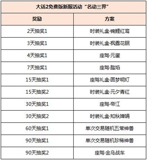 福利1——名动三界,根据开新服的天数可进行抽奖;