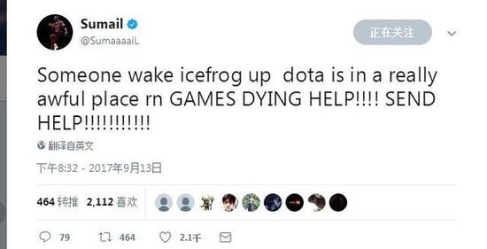 前TI5冠军现EG中单选手Sumail发推文怒斥DOTA及DOTA2的主要制作人冰蛙icefrog。