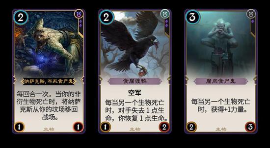 自杀流:传奇卡牌[纳克萨斯-不死食尸鬼]能够无限往返于坟场与战场之间,每回合自杀一次,可与很多黑色卡牌打出配合。