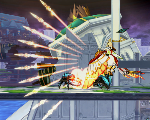 x攻击:扇动翅膀朝敌人发射羽翼。猛烈羽翼(物理+魔法平均)50%连击;可在空中使用。冷却时间5秒
